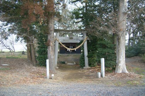 南から。社殿の北と西側がやや小高い平坦面になっているが、どこが墳丘か判然としない。