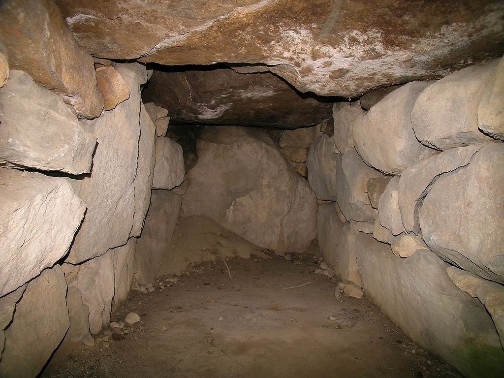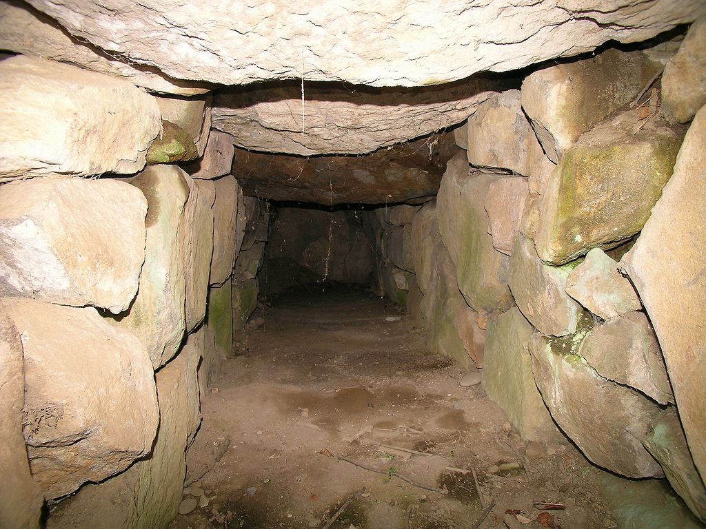 巨石を用いた自然石乱石積袖無型横穴式石室。久しく潜る人はいなかったようで古い蜘蛛の巣が垂れ下がっていた。
