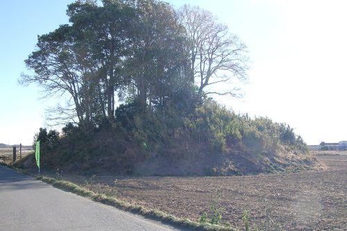 毘沙門山古墳 前方後円墳 全長41.2m、後円部径34m、高さ5.18m 中里 沖積地 土師器片、円筒埴輪片 現地案内板