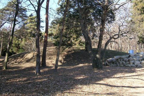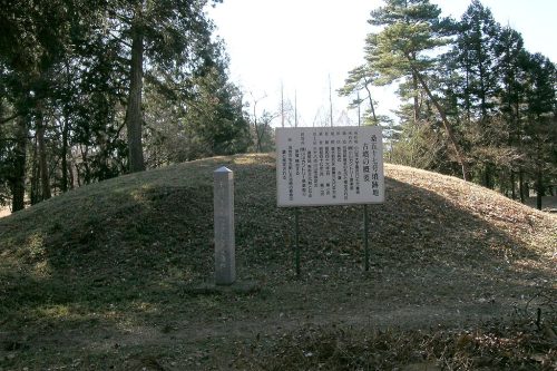 南東から。出土した歯の鑑定結果から埋葬されていたのは30歳前後の女性で、天冠の出土などを考えると非常に興味をそそられる古墳。5世紀末頃の築造と推定されている。なお本古墳は太平洋戦争末期に砲弾隠匿所になったり、土取りをされたりして墳形はかなり損なわれているらしい。現墳丘は復元か?(文献と説明版で古墳の規模がだいぶ違うのは何故?)