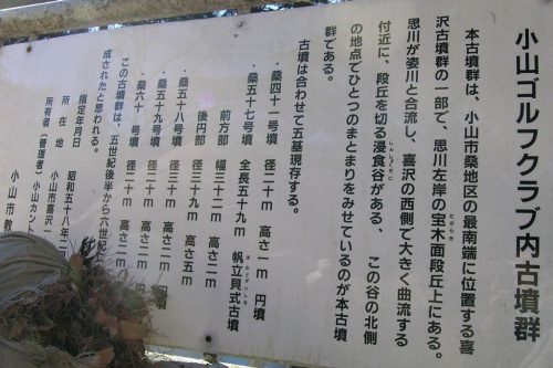 喜沢古墳群(小山ゴルフクラブ内古墳群)は、思川左岸段丘上で小山ゴルフクラブ内に分布しています。5基が現存し5世紀から6世紀の築造と推定されています。【アクセス】★地図★