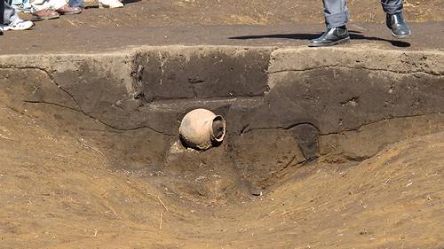 周溝から出土した土師器。