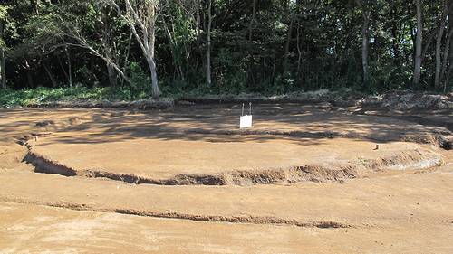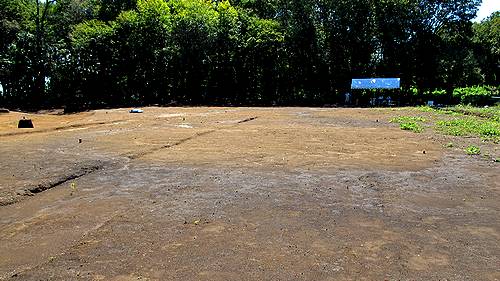 31号墳。墳丘は無いが周溝が黒く浮かび上がりそれとわかる。