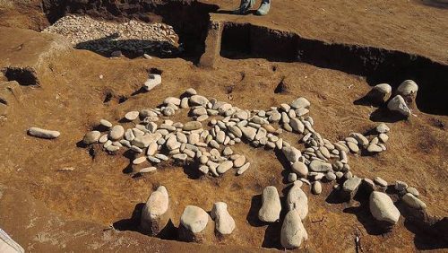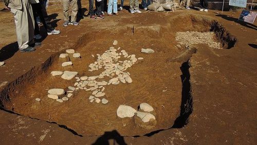 主体部は横穴式石室。右上の礫敷き土坑墓(中期)が元々あったところに円墳を築いたものと思われる。