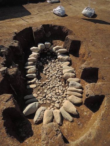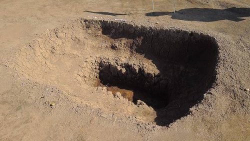 古墳と古墳の隙間にある無墳丘の土坑墓。同様な土坑墓が何例か発見されている。