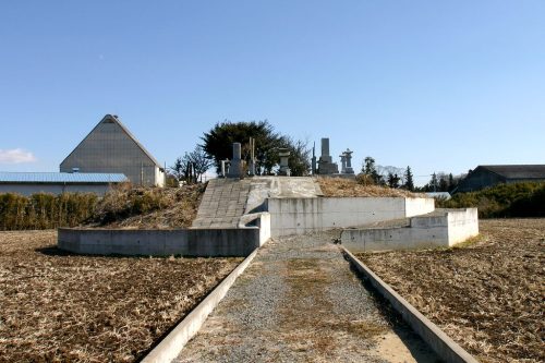 1号墳。コンクリートの土留めで囲われ墓地となっている。