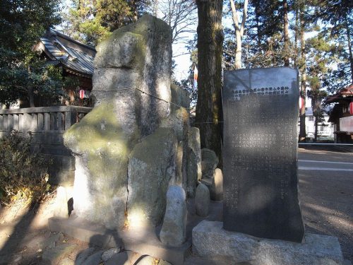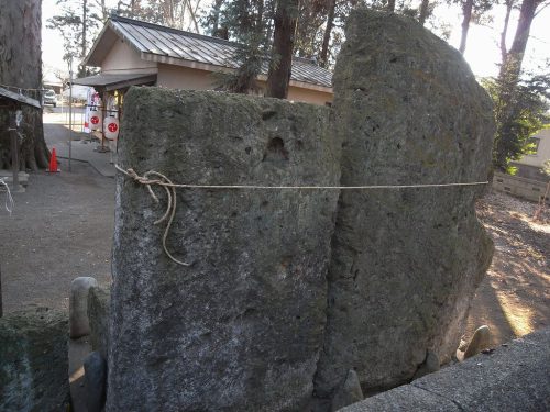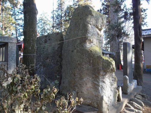 内の橋愛宕神社に移築された石室材。大きい物で高さ3m近くある。