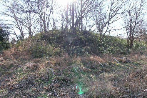 北東から後円部。半地下式の横穴式石室を持ち、埴輪を伴わない古墳時代後期末ころの築造と推定されている。