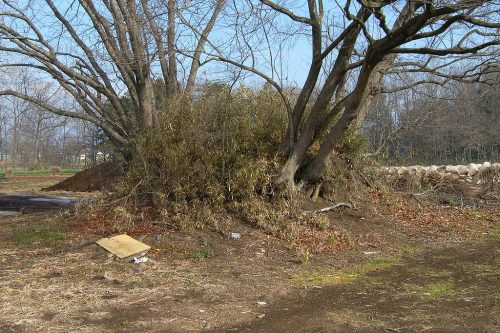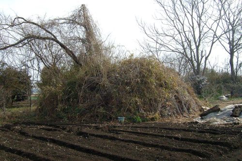 1号墳を東から。1~6号墳は県道沿いに一直線に並んでいる。