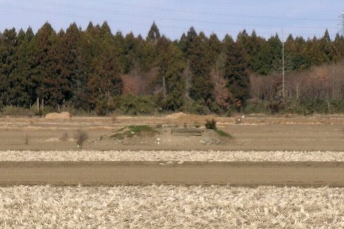 南から。左が2号墳、右が3号墳。長塚古墳の東側にある新郭古墳群の数少ない生き残り。