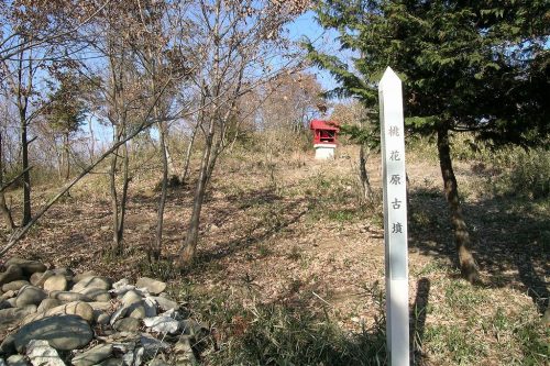桃花原(とうかはら)古墳 円墳 径63m、周溝からの高さ6m 羽生田 台地 横穴式石室、馬具、武器類 現地案内板、探訪とちぎの古墳、五町文化財マップ