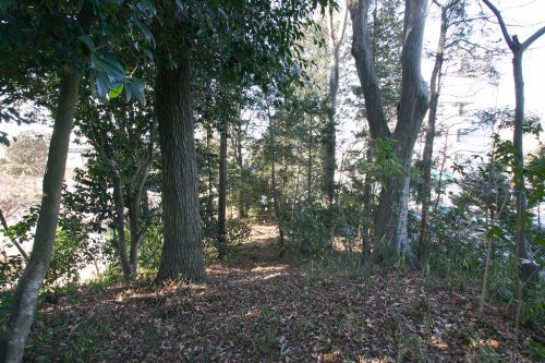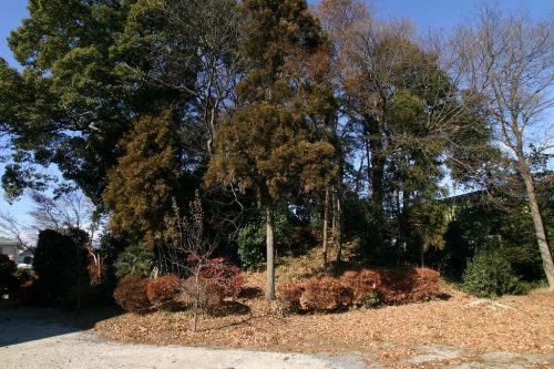 東から後円部。民家庭先にあり許可をいただき近くから撮影。埴輪などから5世紀末の築造と推定されている。