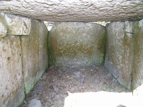 玄室。奥壁・天井石は一枚、側壁は2枚の切石で隙間に小石を嵌め込んでいる。