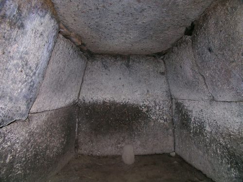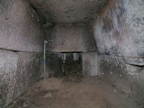 玄室。玄室長3.65m、奥幅1.85m、高さ1.9m。凝灰岩の切石積で益子町の西坪3号墳とそっくり。