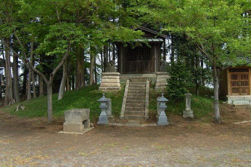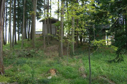 1号墳を南から。神社社殿が乗る。