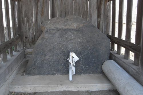 「下野国芳賀郡古墳」(佐藤行哉)で9号墳とマークされている場所には、愛宕神社として祀られる巨石がある。