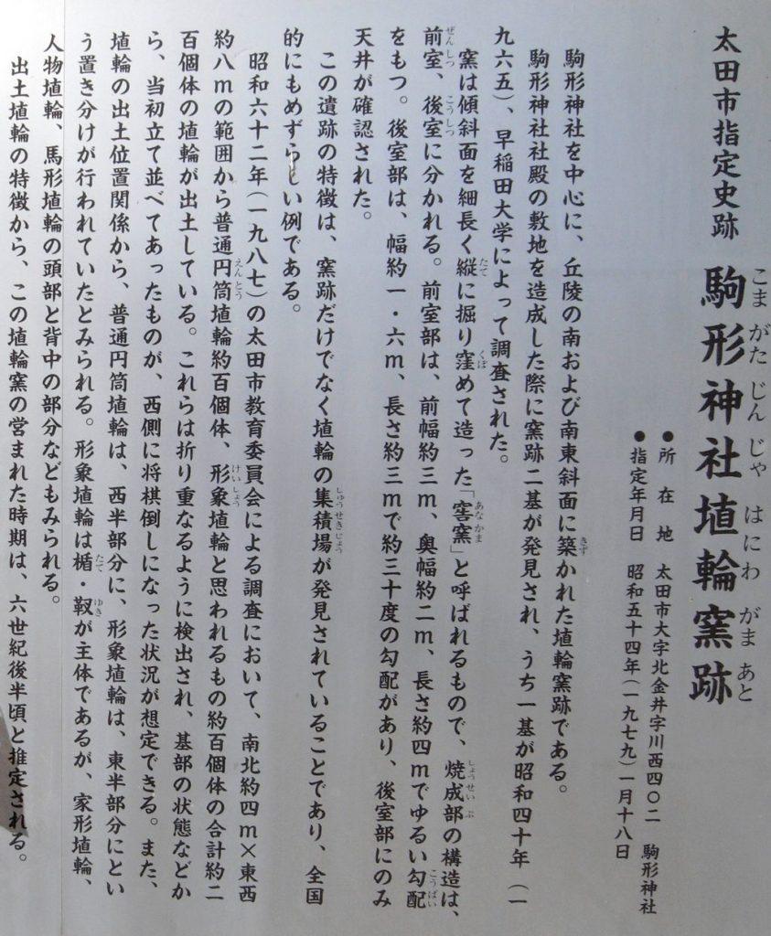 駒形神社埴輪窯跡 北金井町 太田市史、現地案内板