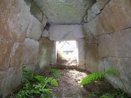 奥から外。玄門は框石の上に玄門柱を立ててその上にマグサ石をのせている。