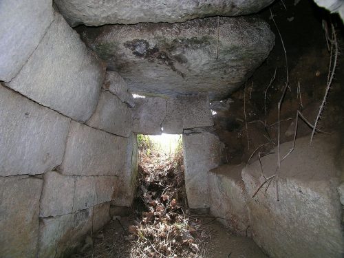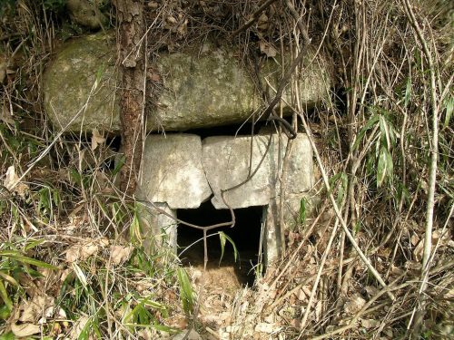 凝灰岩切石積の横穴式石室が開口。羨道部は不明。