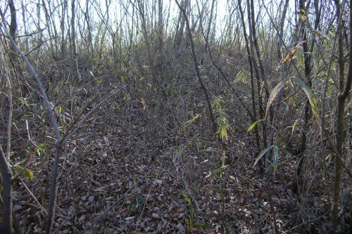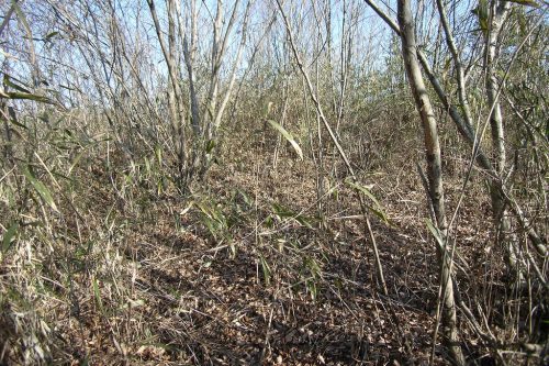 北から後方部頂部付近。一面の藪で全景を捕らえるのは困難だった。(この写真ではあんまりなので実測図を引用。)1987年に周溝調査が行われ前方後方墳であることが明らかとなった。1号墳に後続する前期後半頃の築造と推定されている。