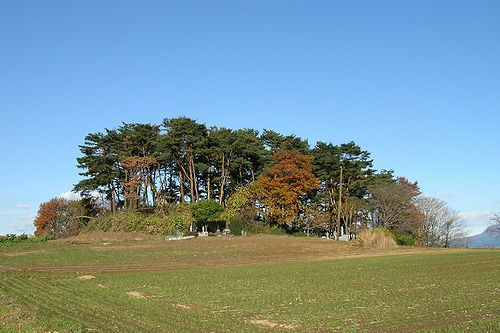 地蔵山古墳(赤堀村1号古墳) 前方後円墳(帆立貝形) 墳長:60m 後円部:径40m 高3.6m 五目牛町 丘陵 群馬県古墳総覧、奈良女子大学前方後円墳データベース