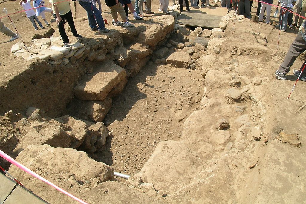 チャート(山石)を使った横穴式石室。すでに盗掘され副葬品は残っていないらしい。