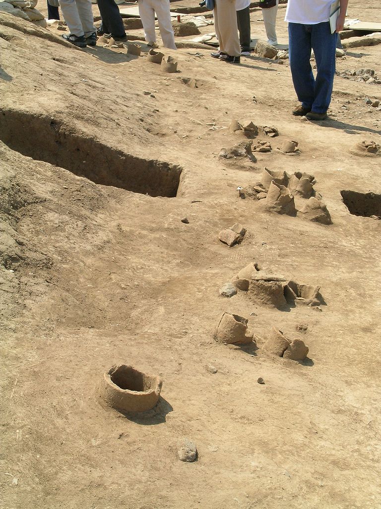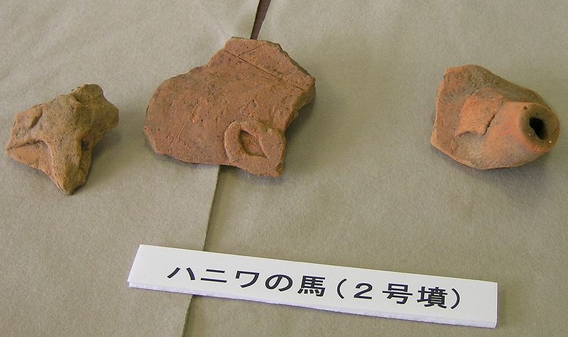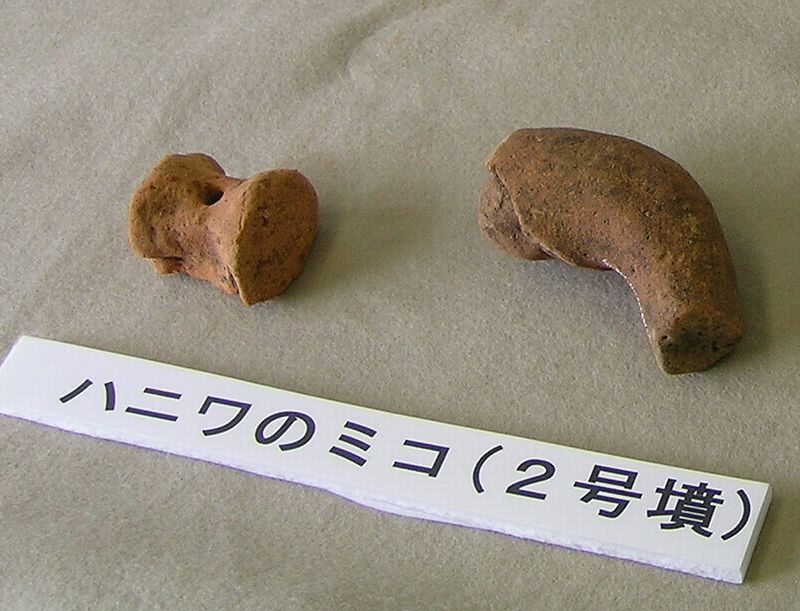 南西側の埴輪列。巫女や馬の形象埴輪らしい。