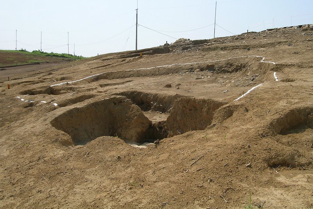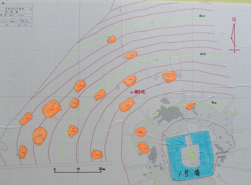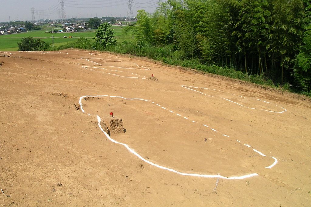 1号墳の北西斜面から古墳と同時期の18基におよぶ住居群が発見された。