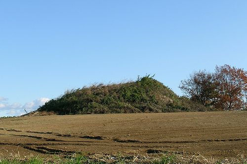 南西から。(2024年撮影)地蔵山の東の裾に築かれた円墳。1950年代に群馬大学による発掘調査が行われている。主体部は粘土槨1、比較的大型の箱式棺状石室2で、5世紀中葉~後半頃の築造と推定される。