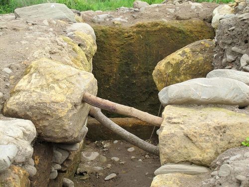 玄室に仕切り石がある。