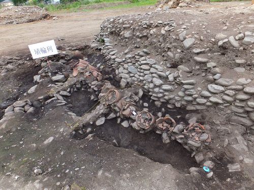 K-10号と同様に石室開口部左右(前半部のみ)に埴輪列がある。10号とは逆に左に円筒埴輪、右に形象埴輪が配されている。