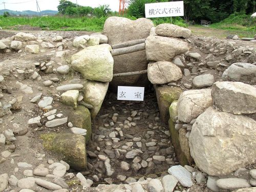 南向き開口する無袖型横穴式石室。凝灰岩の切石積。
