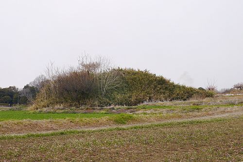 東から。地蔵山の南裾に築かれた円墳。2003年探訪時と変わらず藪だらけ。
