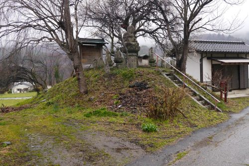 みなかみ町古馬牧村94号古墳(観音塚) 90群馬県, み_みなかみ町, 綜こ_古馬牧村 コメントを追加 6月 052025 本古墳は、下牧PA近くのの利根川左岸段丘上にあります。古墳名 墳形 規模 所在地 立地 出土品、備考 引用古馬牧村94号古墳(観音塚) 円墳 径41尺(12.4m)、高さ4尺(1.2m) 下牧 中近世の塚 上毛古墳綜覧、群馬県古墳総覧 南東から。墳長に石仏を祀る。 北東から。群馬県古墳総覧では中近世の塚、マッピングぐんまでは古墳としている。 南から。 (撮影 2025/04) 返信する 返信をやめる Your Comment 以下のHTML タグと属性が利用できます: <a href="" title=""> <abbr title=""> <acronym title=""> <b> <blockquote cite=""> <cite> <code> <del datetime=""> <em> <i> <q cite=""> <s> <strike> <strong> Name (required) E-mail (required) URI 次回のコメントで使用するためブラウザーに自分の名前、メールアドレス、サイトを保存する。