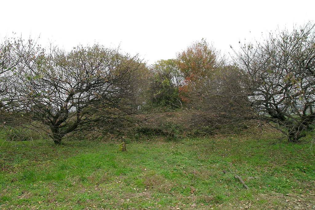南から。壇塚古墳の東側近くにある。墳丘は削られてかなり低くなっている。上毛古墳綜覧では径7.6m、高さ3mとしている。