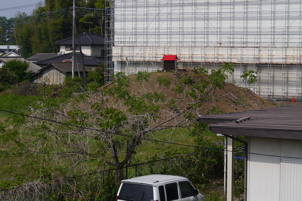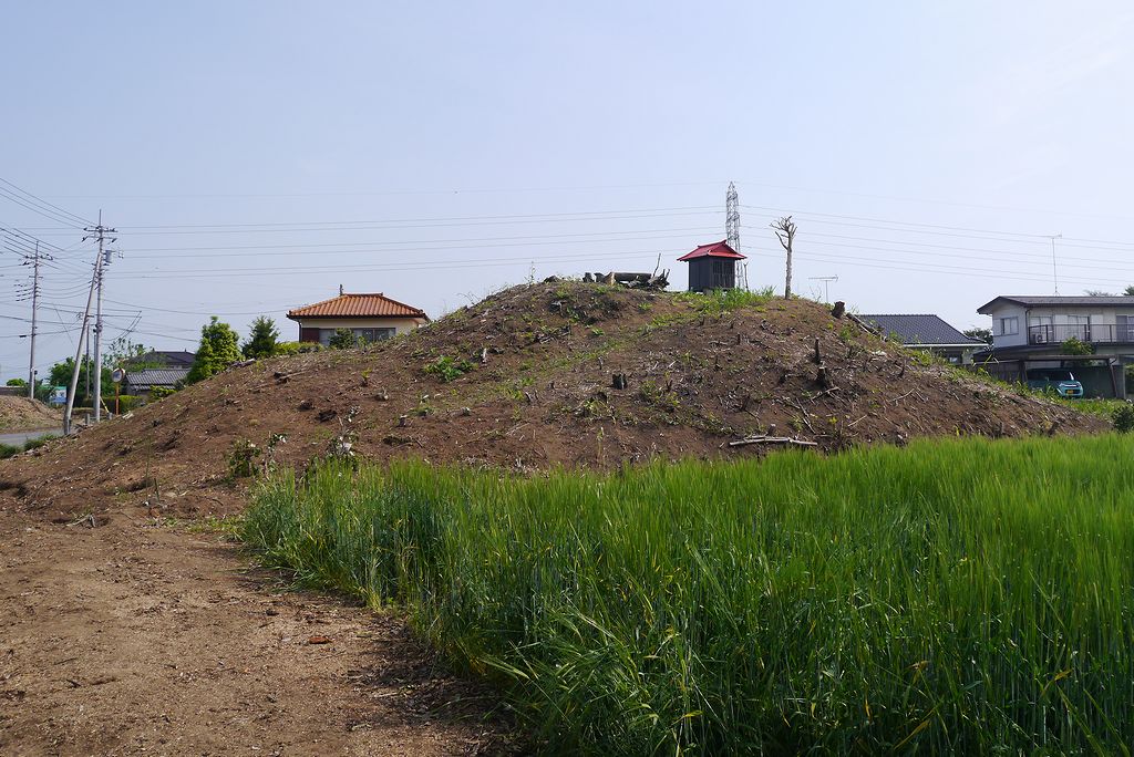 東から。2003年探訪時は藪に覆われていた。墳頂に小さな稲荷社。