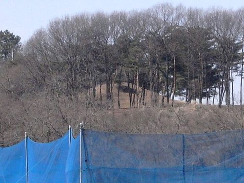 ゴルフ場内に保存されている前方後円墳で南側から遠望できる。