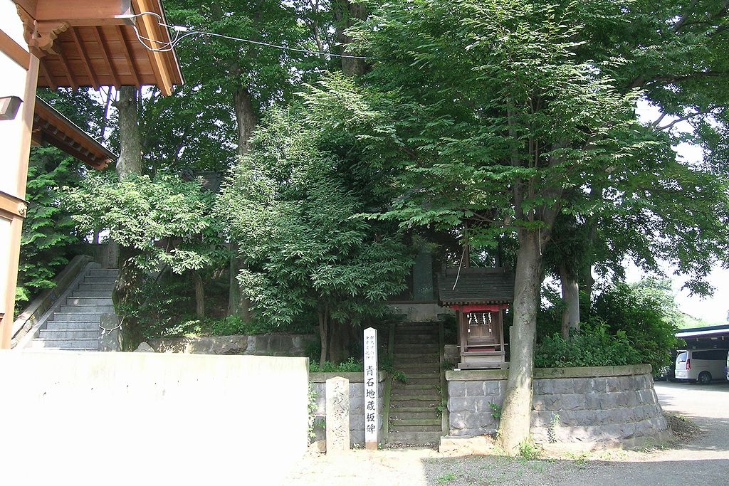 県指定文化財の青石地蔵板碑(写真右)が安置されている。