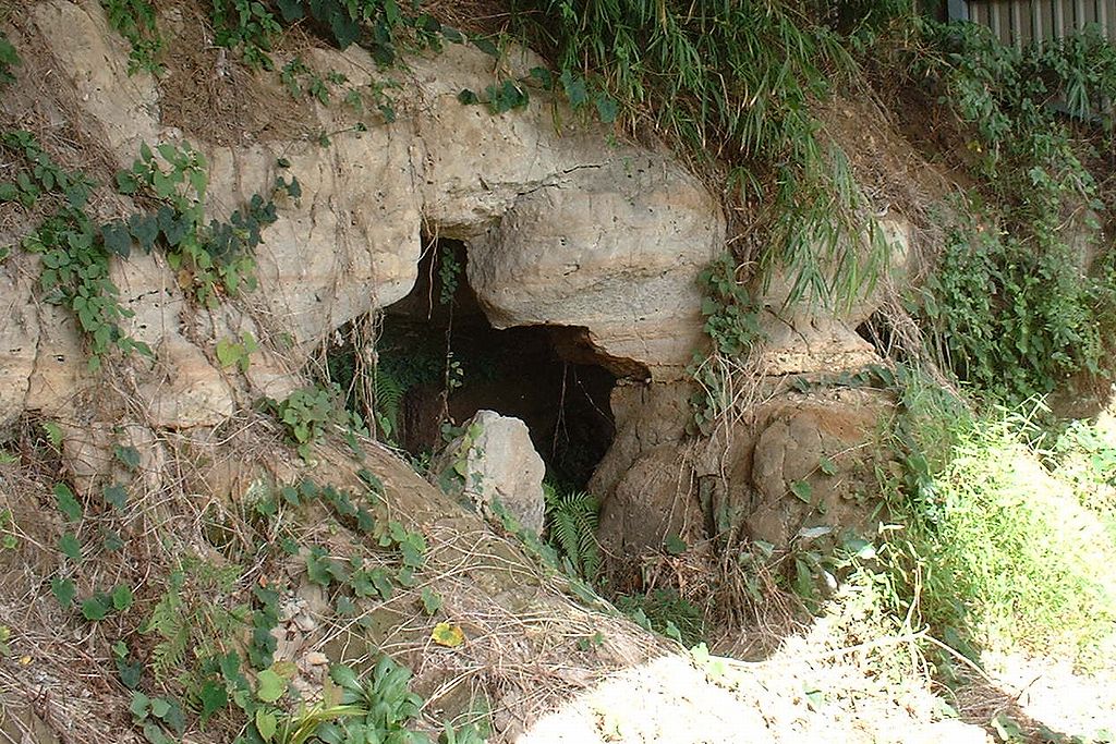 頼母子横穴墓群(海老瀬村1号墳) 横穴墓 室長2m、高さ0.87m、幅0.75m 海老瀬 台地 案内板