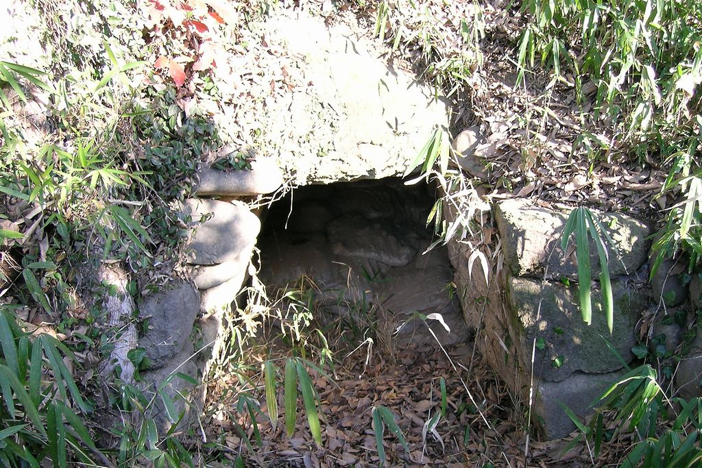 羨道部。現在は土嚢が積まれ玄室を見ることは出来ない。