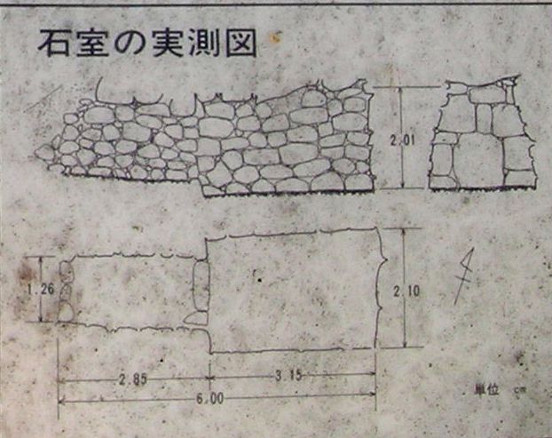 埋葬施設は両袖型の横穴式石室で全長6メートル、玄室の長さ3.15メートル、奥壁下幅2.10メートル、羨道入口幅1.2メートルほどで、左右の側壁は角閃石安山岩の削石で互目積されていた。