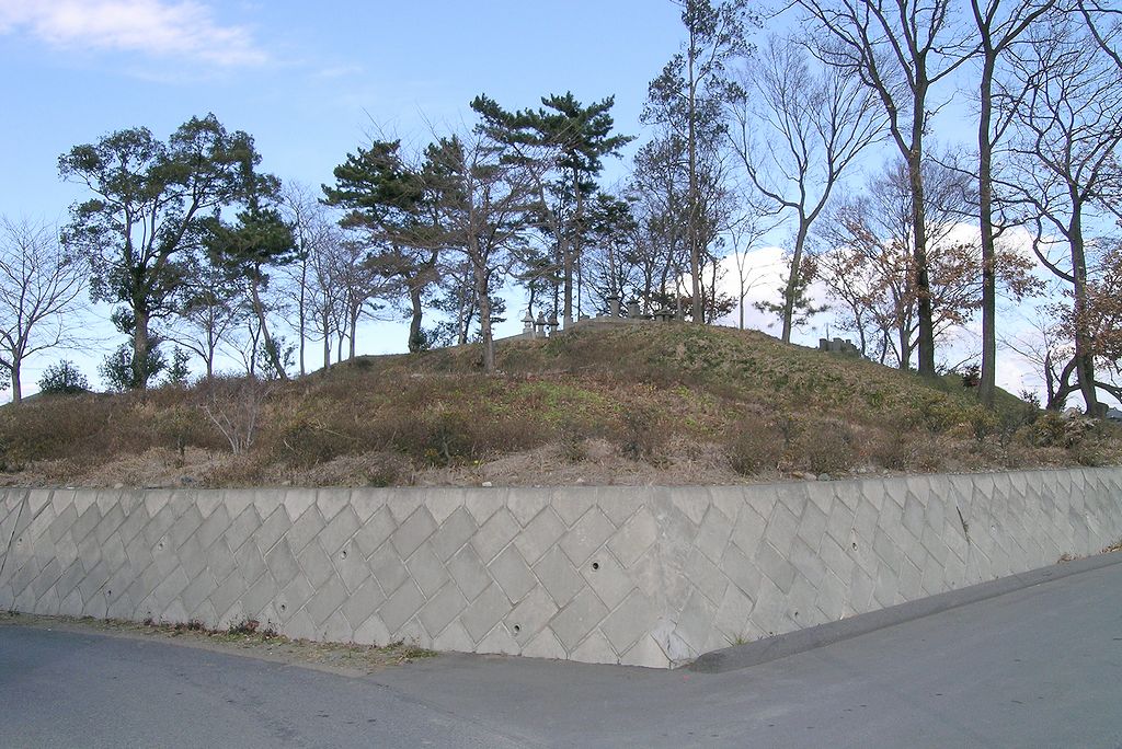 北東から。1995年に墳丘裾部が発掘調査され遺物などから4世紀前半から中葉にかけての築造と推定されている。