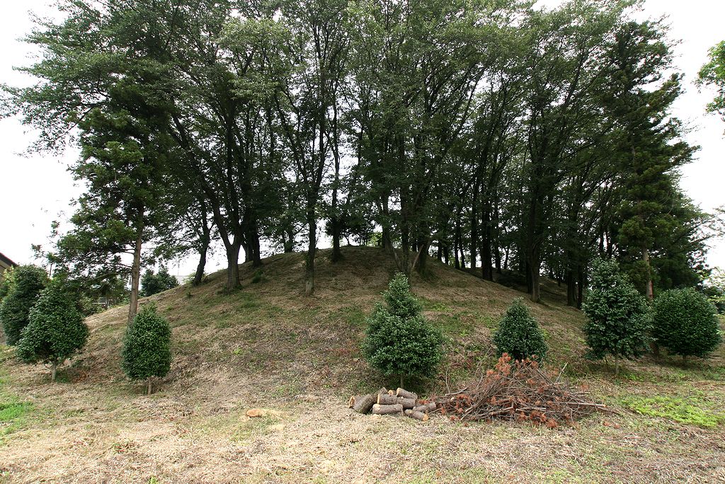 北西から。南側は寺院で削られているが北側は非常に美しい墳丘が残っている。主軸をほぼ東西に取る2段築成の墳丘で上段部分にのみ葺き石が葺かれている。6世紀前半の築造と推定される。