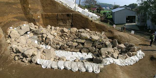 羨道部分を解体して石室外側の様子が見られる状態。