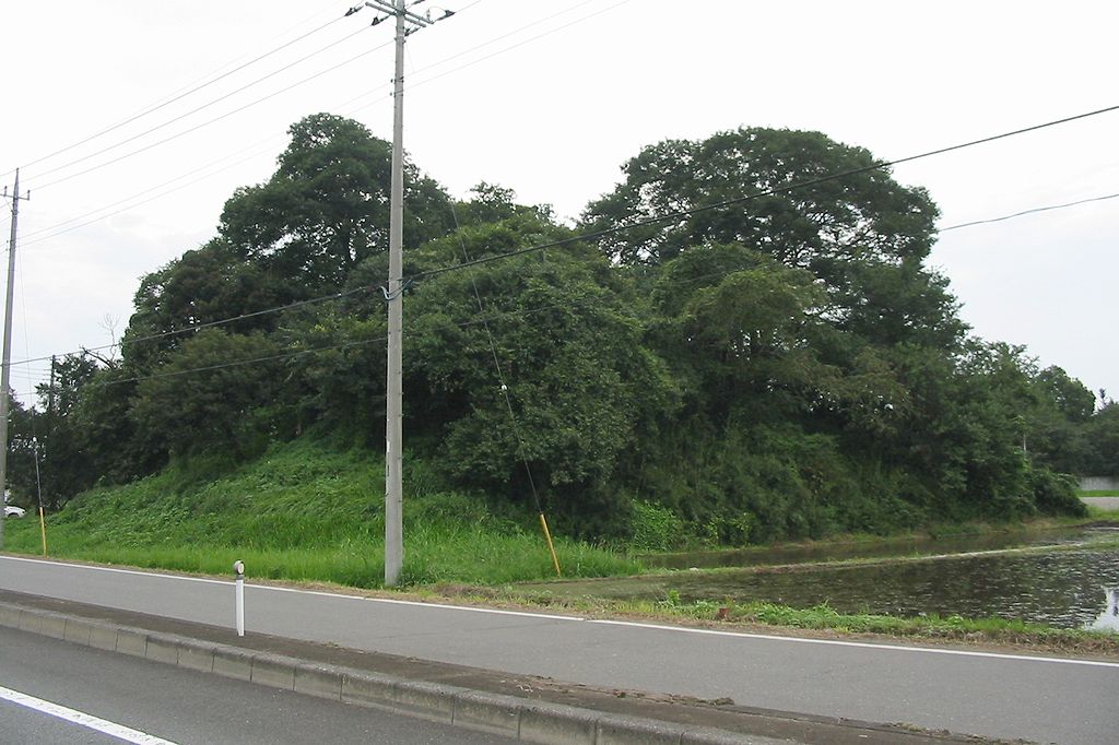 北東から。「筑波山古墳」と書かれた標柱が建てられている(2003年)が、南側を通る上武国道建設のさい周溝と思われる部分の調査が行われ、現在では近世塚と考えられている。