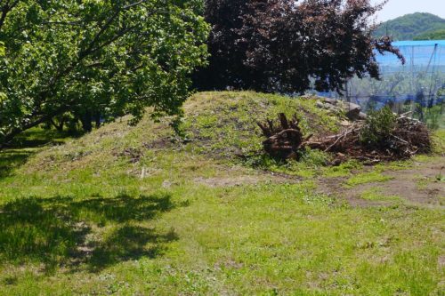 48_49_50号墳のいずれかを西から。この群は果樹園内に数基現存している。(道路から確認できたのはこの2基のみ)