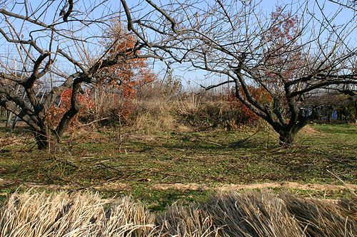 21号墳を北から。一面に果樹園が広がる台地上にある。(榛名町誌では21号、群馬県古墳総覧では20号としている)
