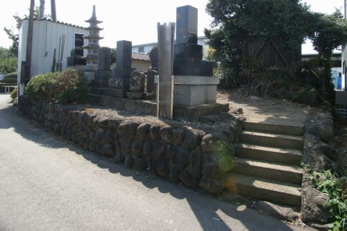 北西から。墓地として利用され、周囲は石垣で囲われている。(群馬県古墳総覧では県台帳No.2430しどめ塚古墳としているがこれは誤記)