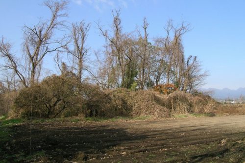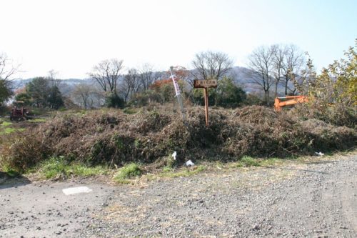 1号墳を北から。古墳名を記した標柱が建てられているが無ければ古墳とわからない。群馬県古墳総覧の的場B号墳に相当。