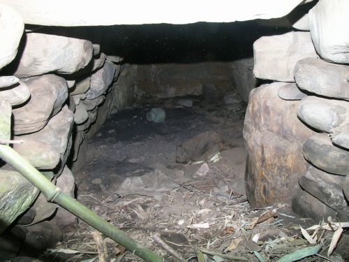 甘楽町宅地内古墳B(匿名) 90群馬県, か_甘楽町, 綜お_小幡町 コメントを追加 3月 022025 民家敷地内のため匿名で掲載。所有者の方にお願いして石室を見学。 民家敷地内のため匿名で掲載。所有者の親戚の方が隣家にお住まいで、お願いして石室を見学。開口部は狭く体がやっと入るくらい。町史によれば昭和43年当時は俵などが置かれていたようだ。直刀と金環が出土している。 玄室。下段に大きな石を配している。 奥から。土圧で右側の壁が押されていのか危険な状態。 (撮影 2004/02) 返信する 返信をやめる Your Comment 以下のHTML タグと属性が利用できます: <a href="" title=""> <abbr title=""> <acronym title=""> <b> <blockquote cite=""> <cite> <code> <del datetime=""> <em> <i> <q cite=""> <s> <strike> <strong> Name (required) E-mail (required) URI 次回のコメントで使用するためブラウザーに自分の名前、メールアドレス、サイトを保存する。
